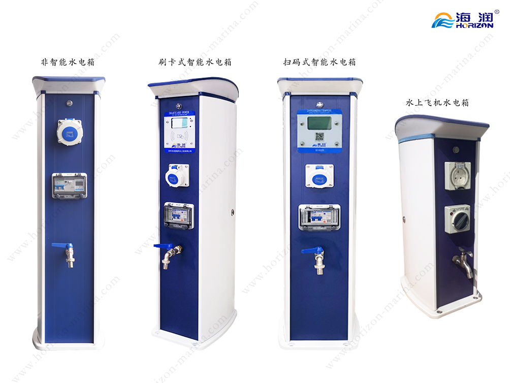 According to your requirements, One service pedestal can provide water and electricity devices used by two yachts, and it’s equipped with sockets, electricity meters, miniature circuit breakers, lighting, photoelectric sensor switch, faucets, etc., which can be used and managed by intelligent code scanning or card swiping.